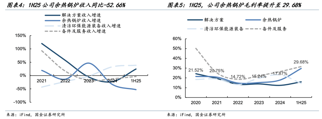 余热锅炉是公司传统主业,2020-2024年收入占比基本保持在30%-40%。2024和1H25公司余热锅炉业务收入有所下滑,主要系一方面,虽然燃机海外市场从2024年底开始需求爆发,但燃机主机厂例如GEV等拥有自己的余热锅炉工厂,在燃机行业需求上行的初期,其自身产能基本可以满足自身需求,但是展望2026年,随着燃机行业需求持续上行,海外余热锅炉逐步供不应求,预计将会有更多订单外溢到国内厂商。另一方面,我国“十四五”期间,燃机招标主要集中在前三年,2024和2025年国内市场增速有所放缓。但未来随着我国能源结构转型加速,燃机有望在调峰和清洁能源协同中发挥较大作用,“十五五”期间我国燃机招标有望进一步提升。公司作为国内燃机余热锅炉龙头,有望把握机遇,实现余热锅炉业务收入的持续提升。