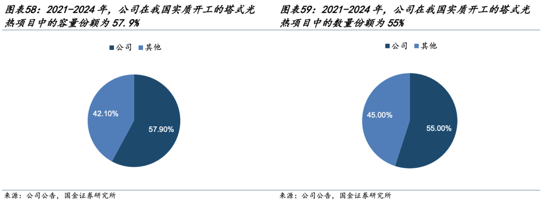 深度合作光热解决方案商可胜技术,未来光热订单有望持续提升。公司是我国光热发电行业的早期开拓者,在中国2021至2024年实质性开工的塔式光热项目中,公司为其中11座电站提供了最关键的聚光集热系统,在项目总设计容量和项目数量上的市场份额分别高达57.9%和55.0%,占据领先地位。可胜技术是全球领先的塔式光热发电和熔盐储能解决方案提供商,公司与可胜技术,业务上围绕光热和储能技术展开深度合作,是可胜技术在光热发电项目中的关键设备供应商,为其提供核心的熔盐吸热器和换热器系统,共同打造光热领域示范项目;股权上,公司持有可胜技术3.25%的股权。公司与可胜技术在光热领域有较强的业务协同。凭借过往的深度合作经验,在未来我国光热装机持续提升背景下,公司光热发电设备订单有望持续提升。