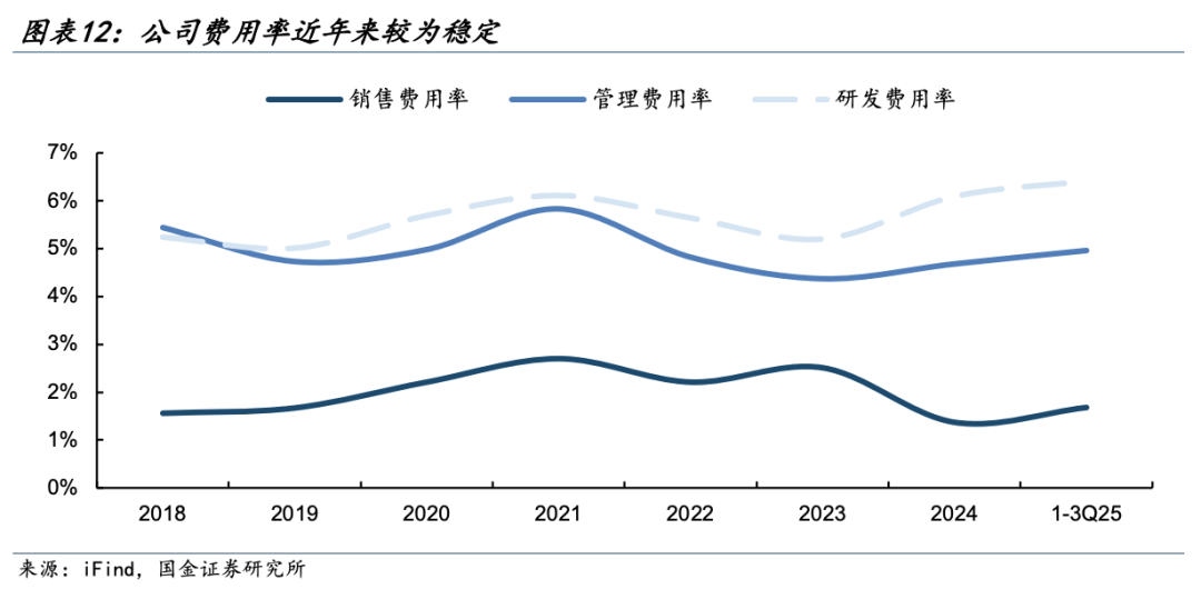 期间费用率维持稳定,营运资金管理强化,现金流与利润同步改善。期间费用率方面,公司销售、管理和研发费用率近年来相对稳定。2025年,公司加强在手订单预收款项催收及转销项目应收款管理,1-3Q25实现经营性现金流净额3.48亿元,同比+130%。根据公司25年业绩预告,2025年公司加强应收账款及存货管理,营运资金占用总额有所下降,2025年经营活动现金净流入明显提升,计提的预期信用损失及资产减值损失较上年同期减少,1-3Q25公司资产减值损失和信用减值损失为-0.30/-0.11亿元,较1-3Q24的-0.35/-0.90亿元显著下滑,带动25年公司扣非后归母净利润大幅增加。